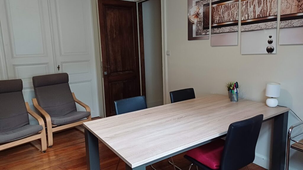 Cet espace professionnel pour psy, thérapeute, professions paramédicales est très confortable. Il est idéal pour vos prestations en thérapie, et l’organisation d’ateliers, formations, thérapies de groupes.